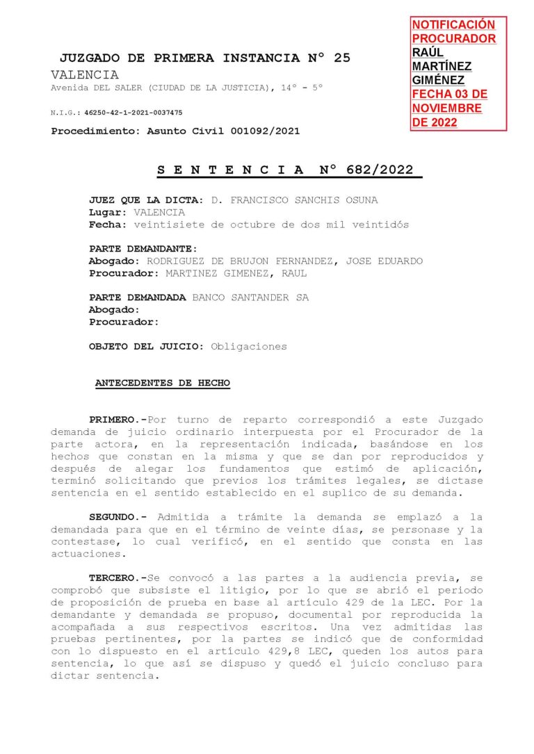 Sentencia de éxito de QUERCUS JURÍDICO: se condena al Banco Santander a devolver a un cliente, 11 años después, los gastos pagados a causa de una cláusula nula insertada en la escritura, que le obligaba a pagar gestoría, tasadora, registro y notaría de una escritura pública de compraventa con subrogación de hipoteca y modificación de hipoteca.