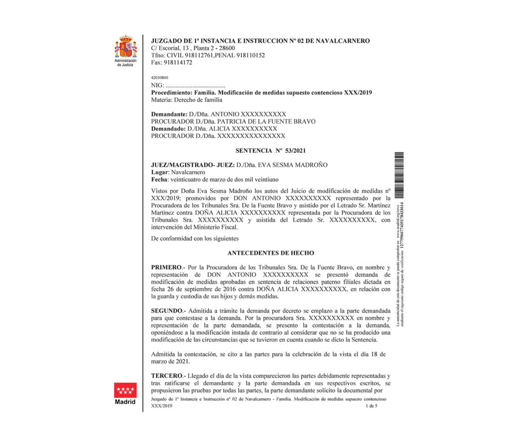 Reciente sentencia de éxito de SJ, obteniendo la custodia compartida para nuestro cliente. El Juzgado de Navalcarnero entendió que existían cambios ciertos para acceder a la modificación, fijando la custodia compartida semanal.